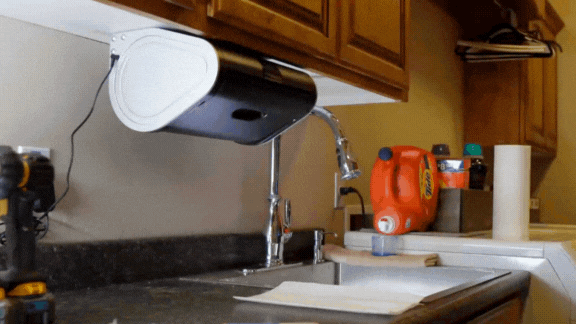 You can mount it under a cabinet or on a wall using the included bracket and screws. Installation takes just a few minutes.